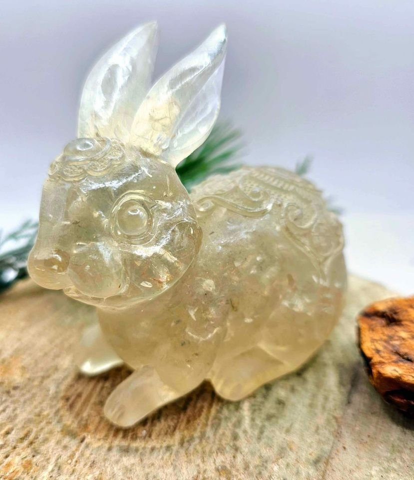 Nature Crystal Chips Resin Blessing Fortune Big Rabbit Figure.