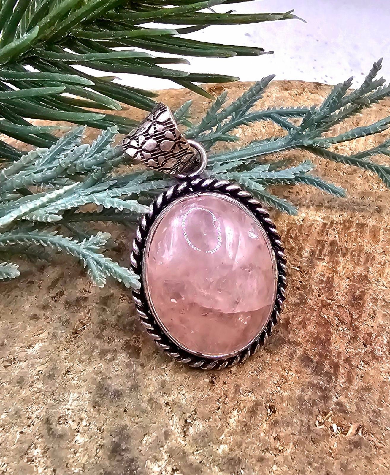 Nature Rose Quartz Sterling Pendant Necklace. Price includes both pendant and cord.