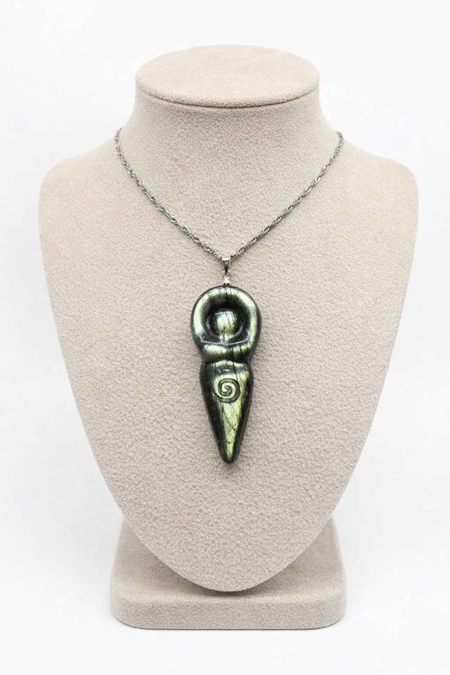 Nature Labradorite Carved Spiral Goddess Pendant Necklace