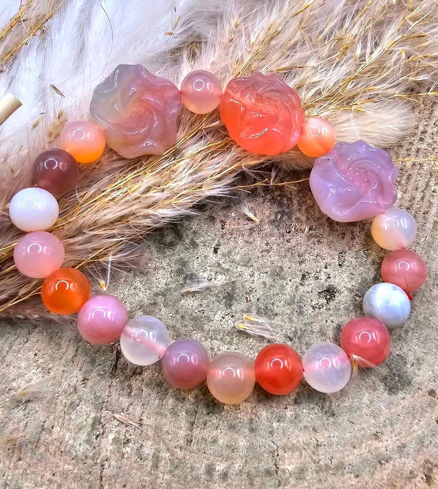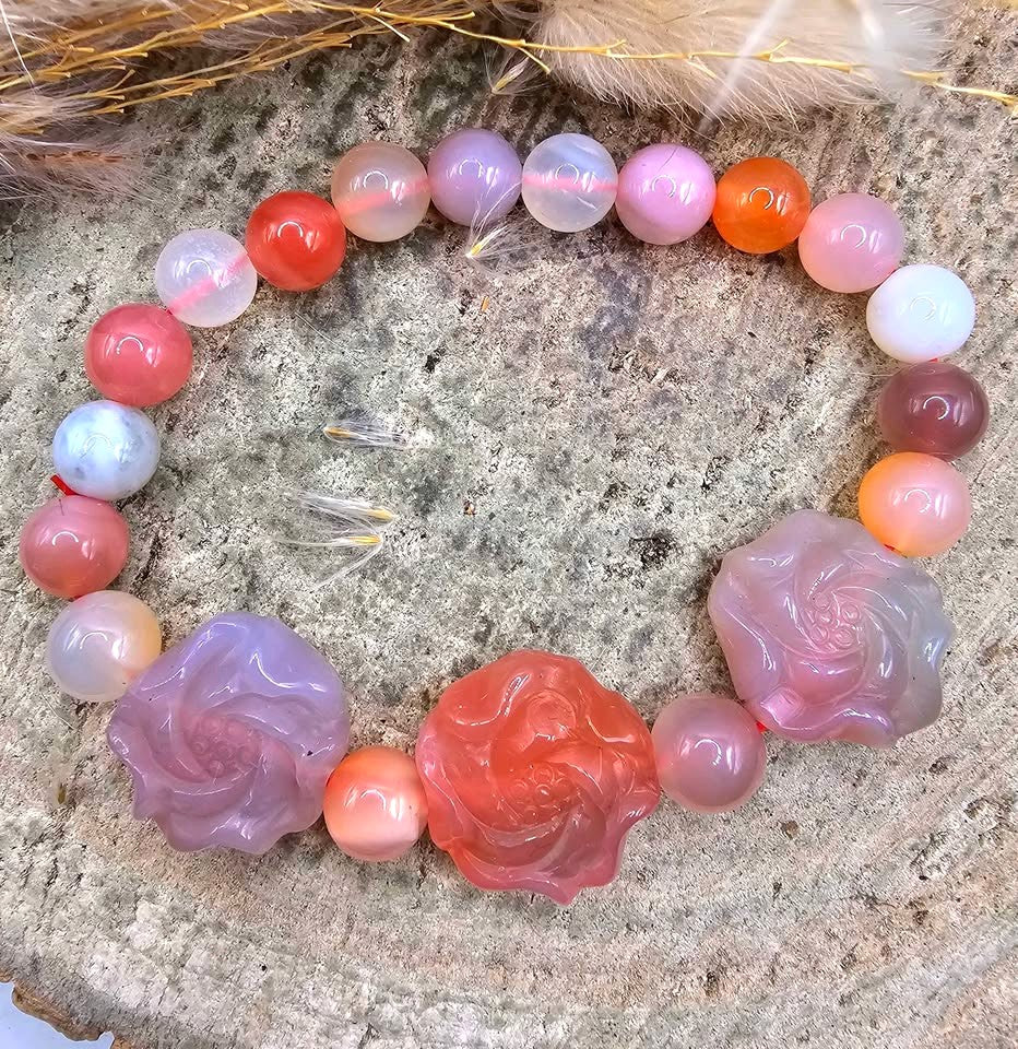 Nature Yanyuan Agate Lotus Bracelet.