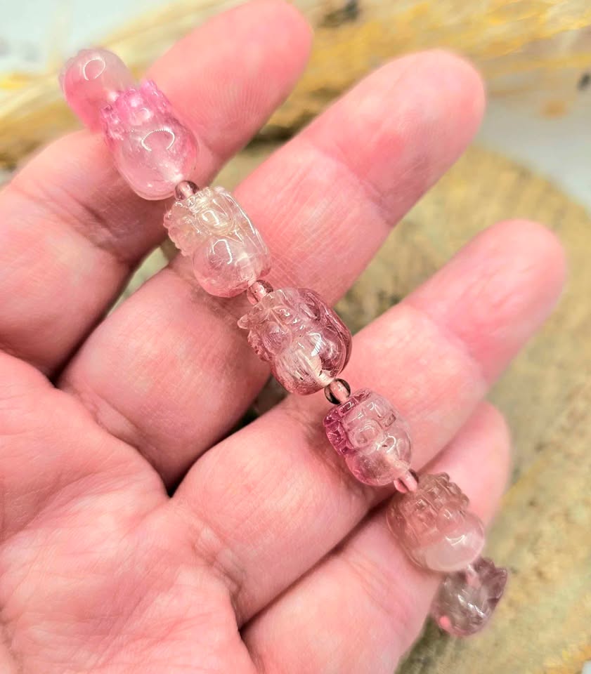 Premium Grade Nature Pink Tourmaline Pi Xiu Bracelet.