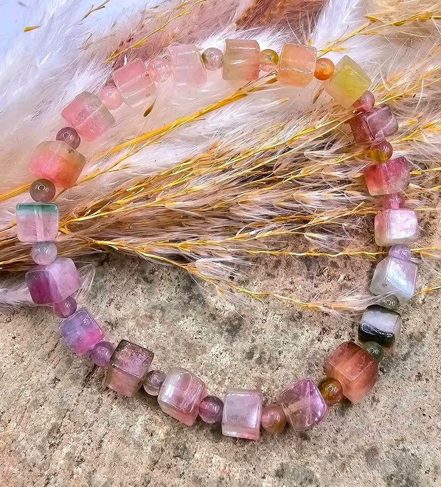 Premium Grade Tourmaline Watermelon Crystal Cubes Bracelet